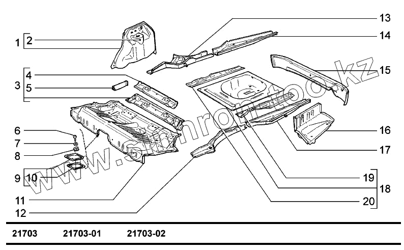 Каталог запасных частей к технике: ВАЗ-2170 (LADA Priora). Пол кузова задний