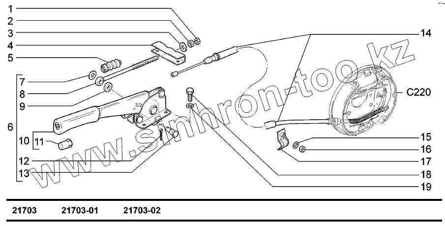 Каталог запасных частей к технике: ВАЗ-2170 (LADA Priora). Привод стояночного тормоза