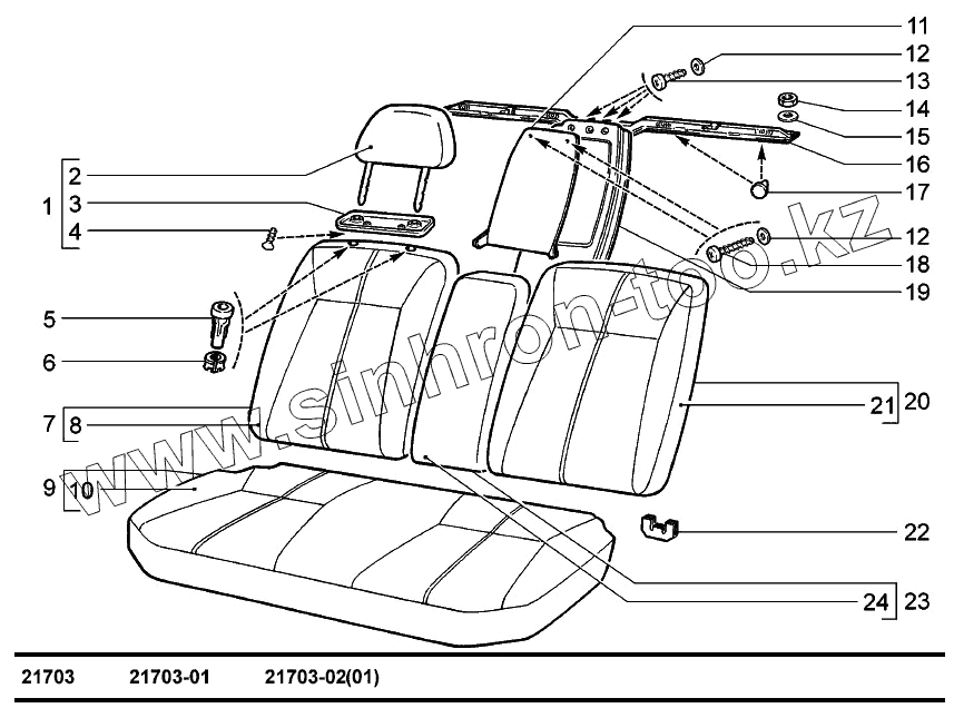 Каталог запасных частей к технике: ВАЗ-2170 (LADA Priora). Сиденье заднее