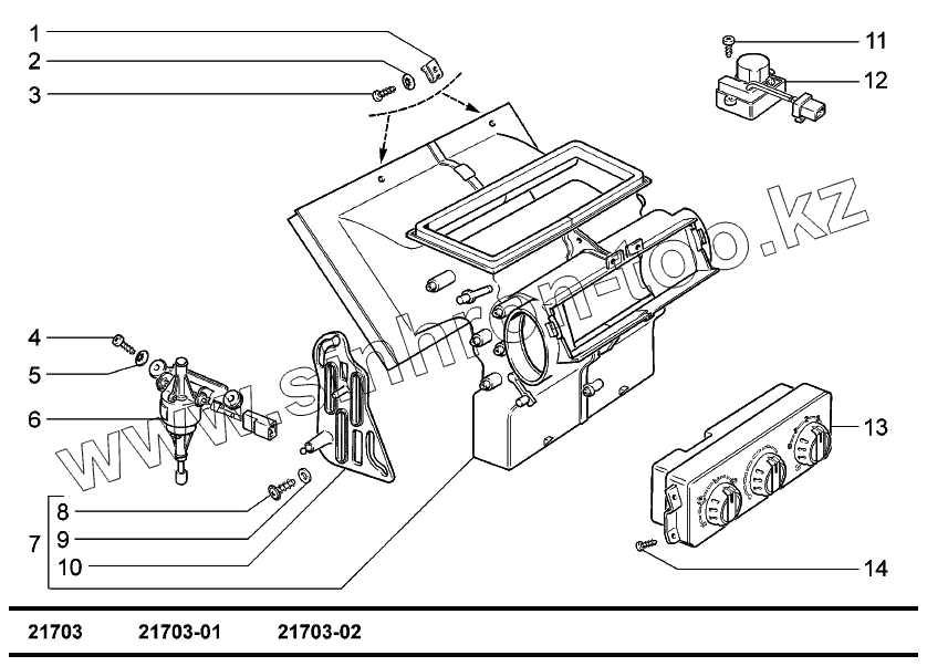 Каталог запасных частей к технике: ВАЗ-2170 (LADA Priora). Управление вентиляцией и отоплением