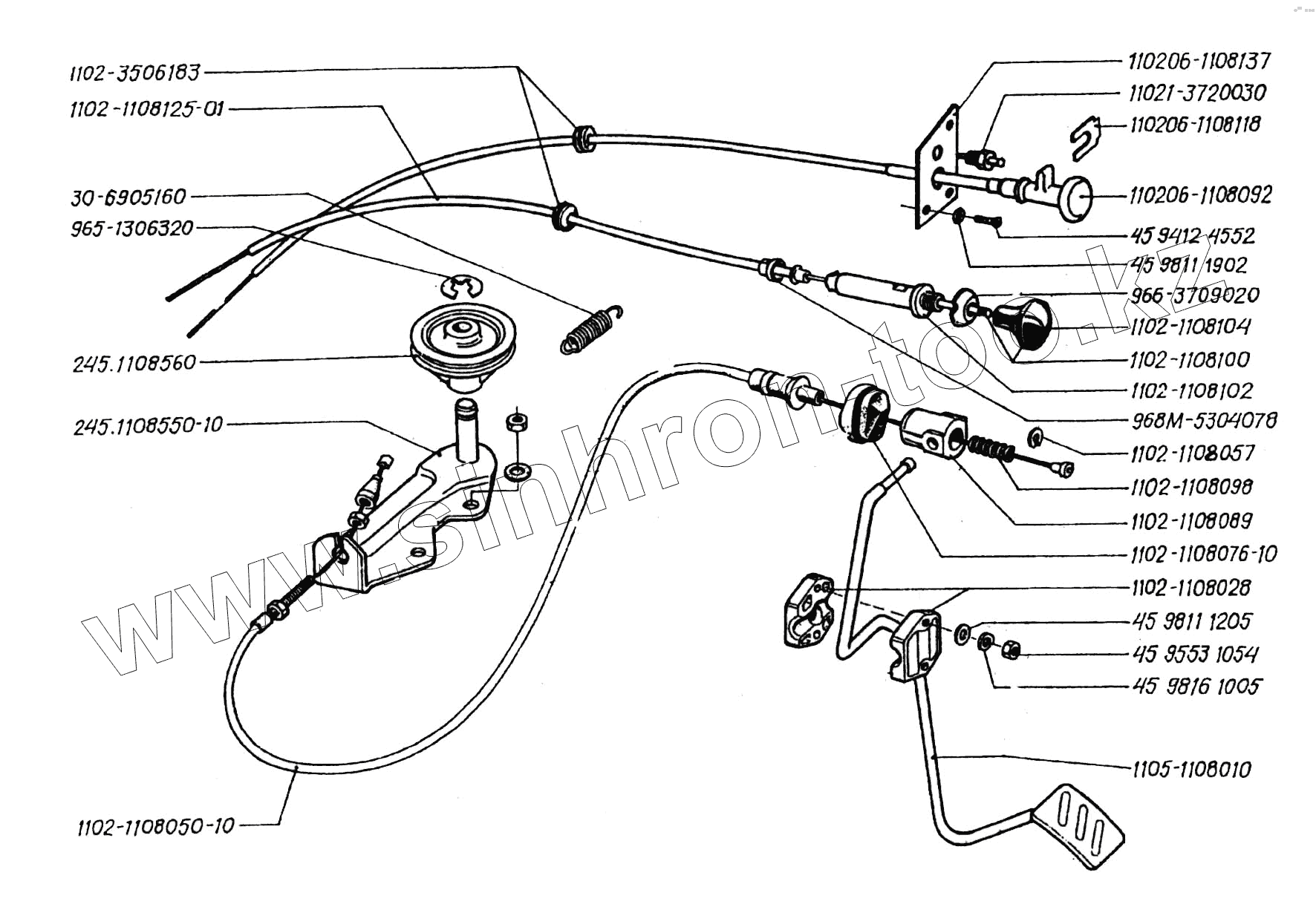 Каталог запасных частей к технике: ЗАЗ 1102 (Таврия). Акселератор и управление воздушной заслонкой