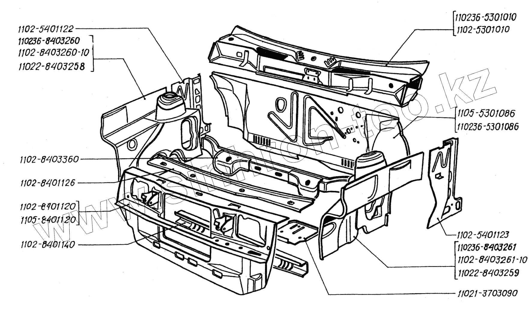 Каталог запасных частей к технике: ЗАЗ 1102 (Таврия). Детали кузова