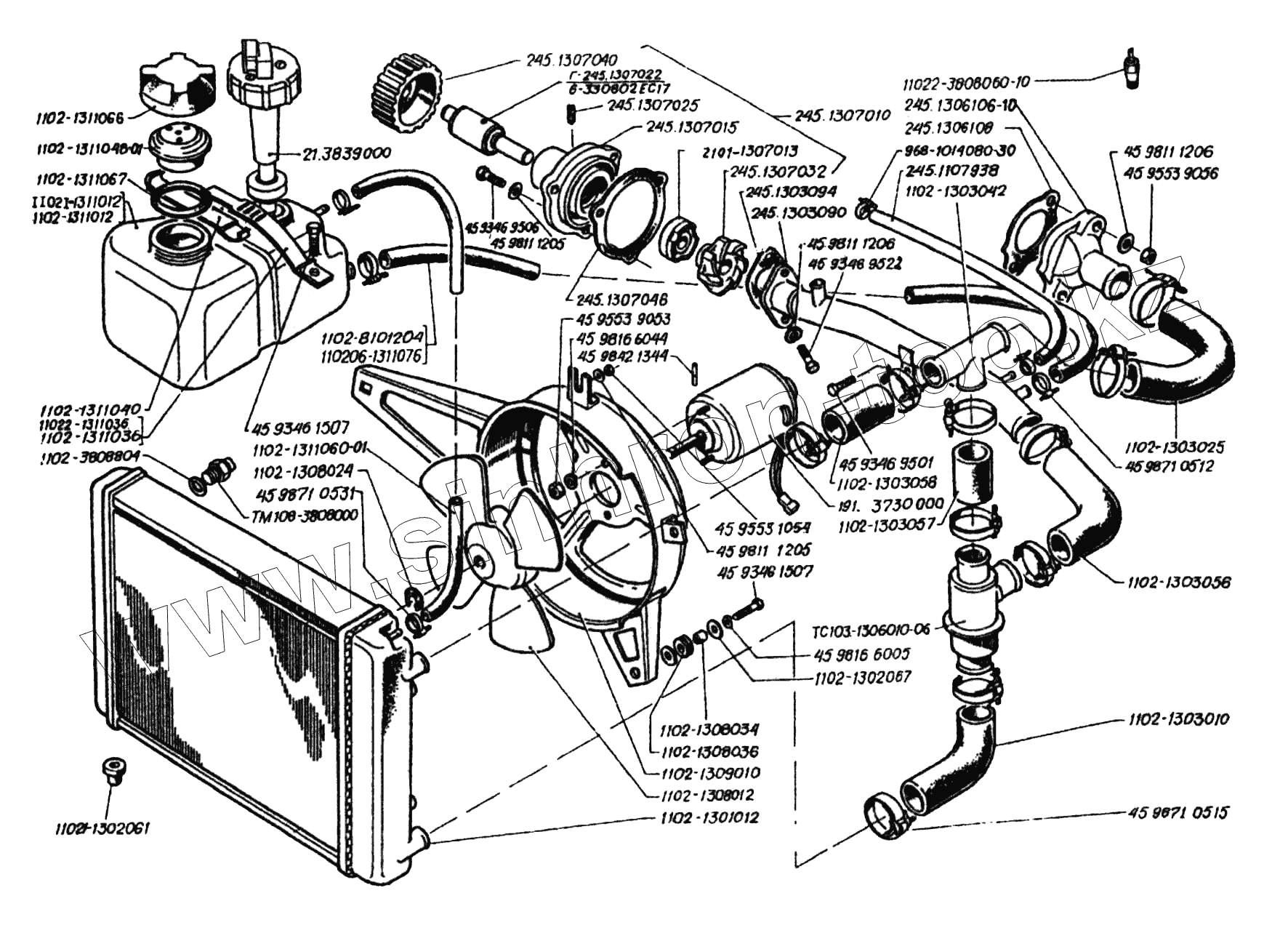 Каталог запасных частей к технике: ЗАЗ 1102 (Таврия). Детали системы охлаждения