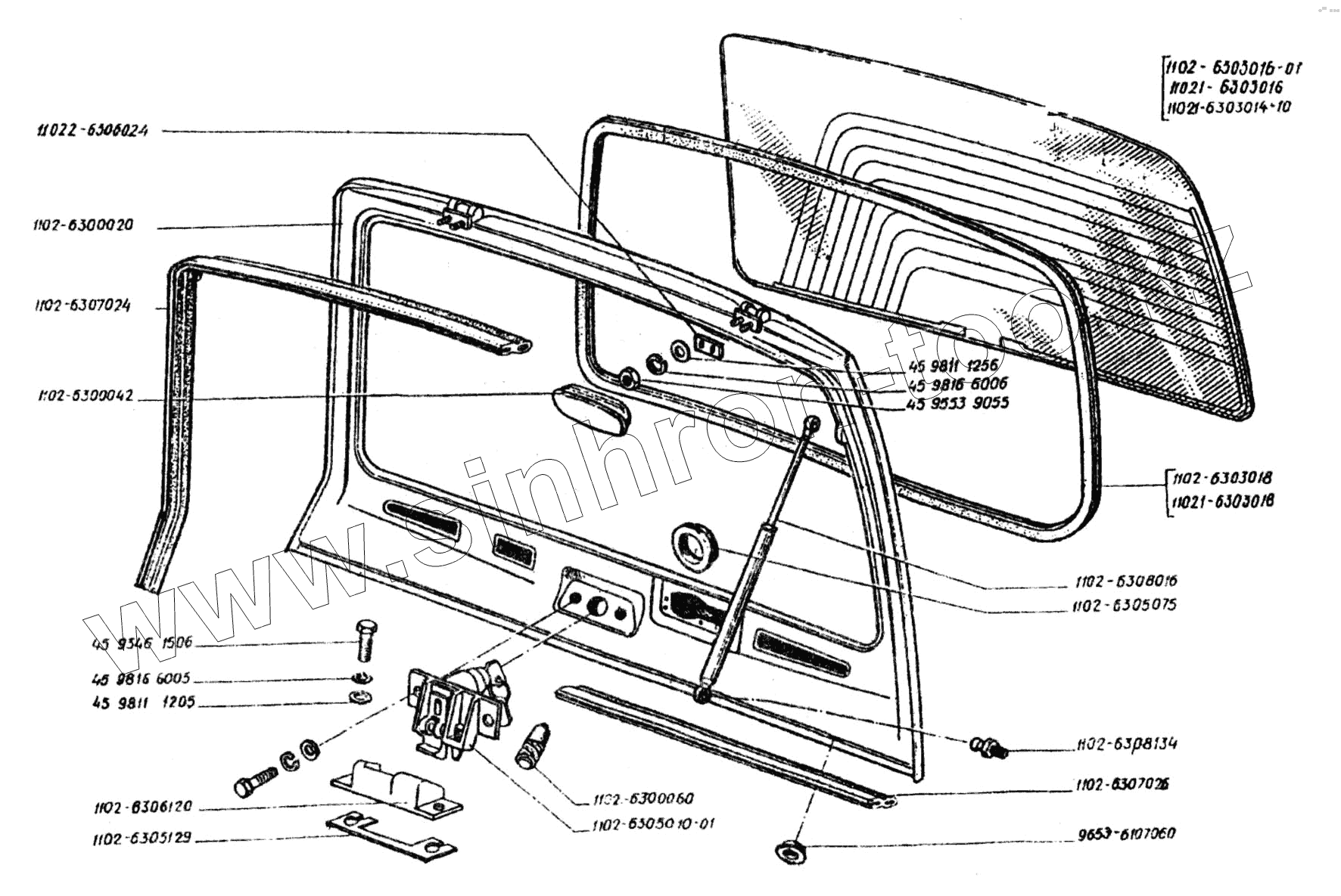 Каталог запасных частей к технике: ЗАЗ 1102 (Таврия). Дверь задка, стекло, уплотнитель, замок