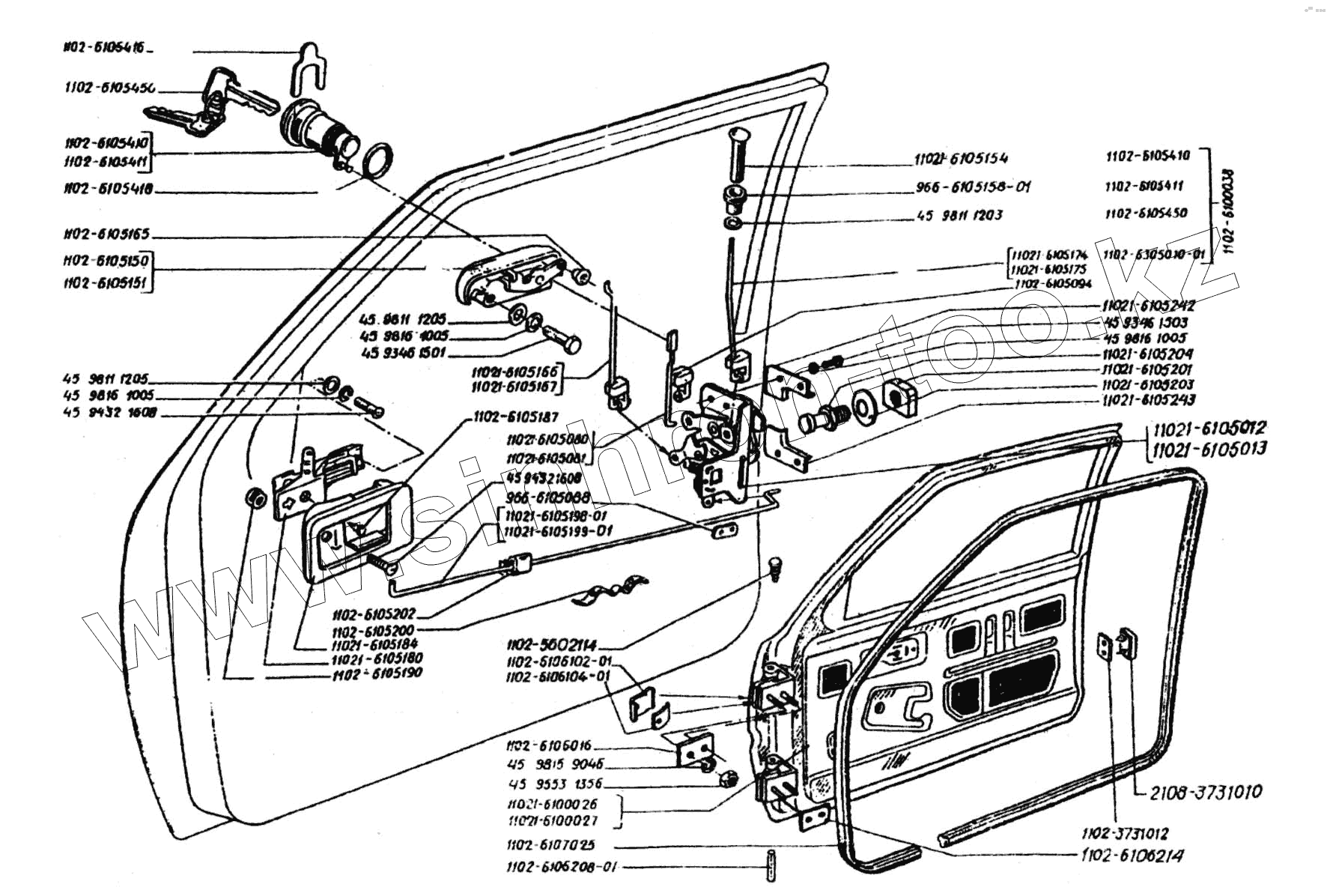 Каталог запасных частей к технике: ЗАЗ 1102 (Таврия). Двери, замки, ручки дверей, уплотнитель