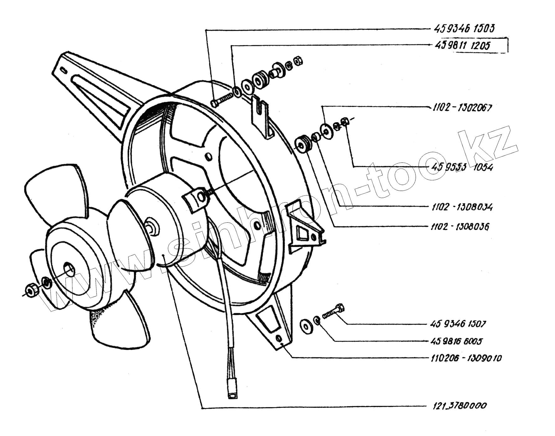 Каталог запасных частей к технике: ЗАЗ 1102 (Таврия). Электровентилятор 121.3780000 с кожухом