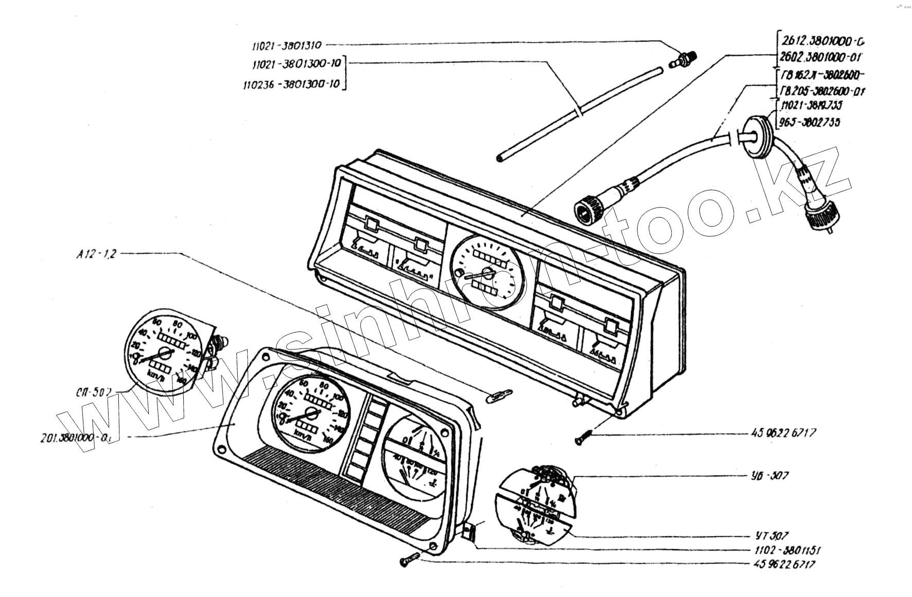 Каталог запасных частей к технике: ЗАЗ 1102 (Таврия). Комбинации приборов