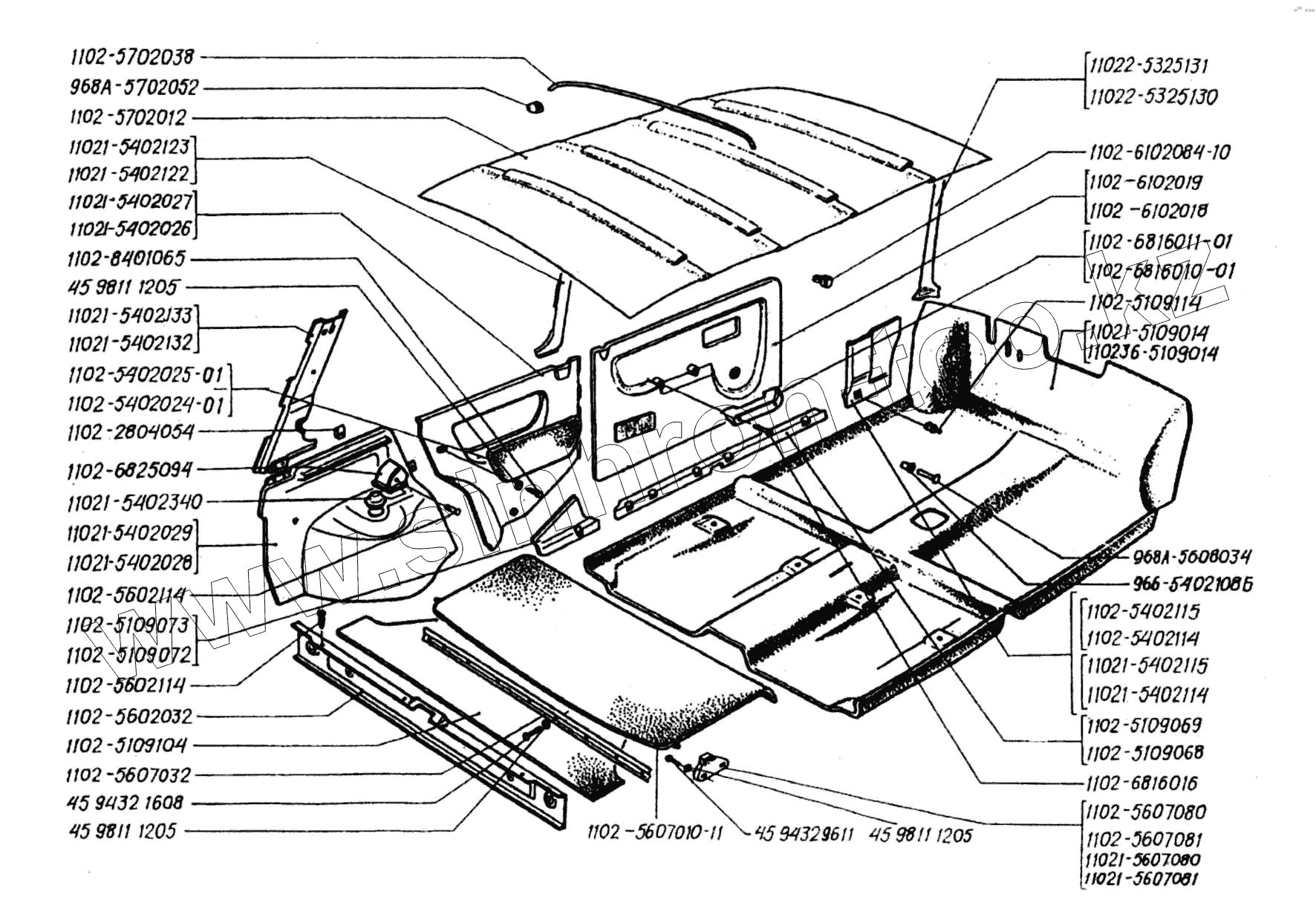Каталог запасных частей к технике: ЗАЗ 1102 (Таврия). Коврики пола и багажника, обивка салона