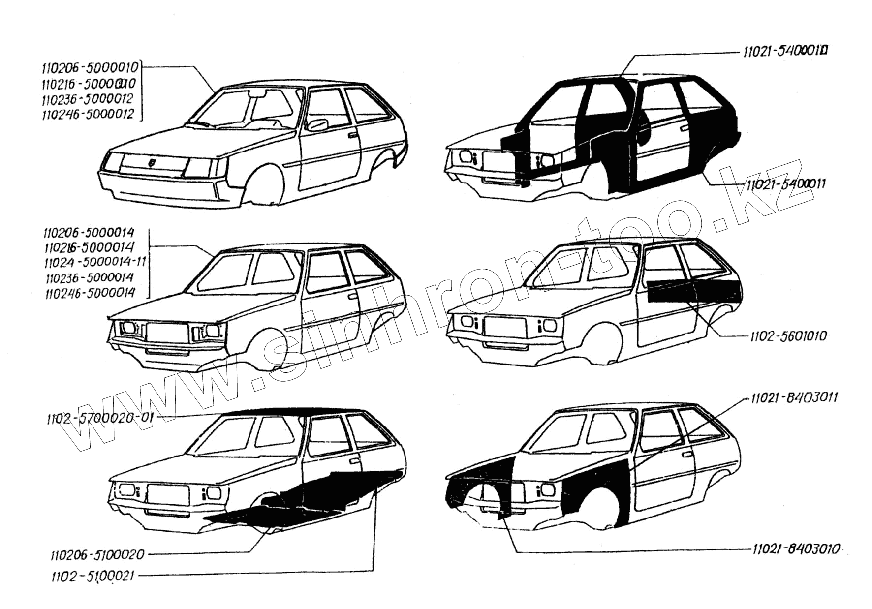 Каталог запасных частей к технике: ЗАЗ 1102 (Таврия). Кузов, детали кузова