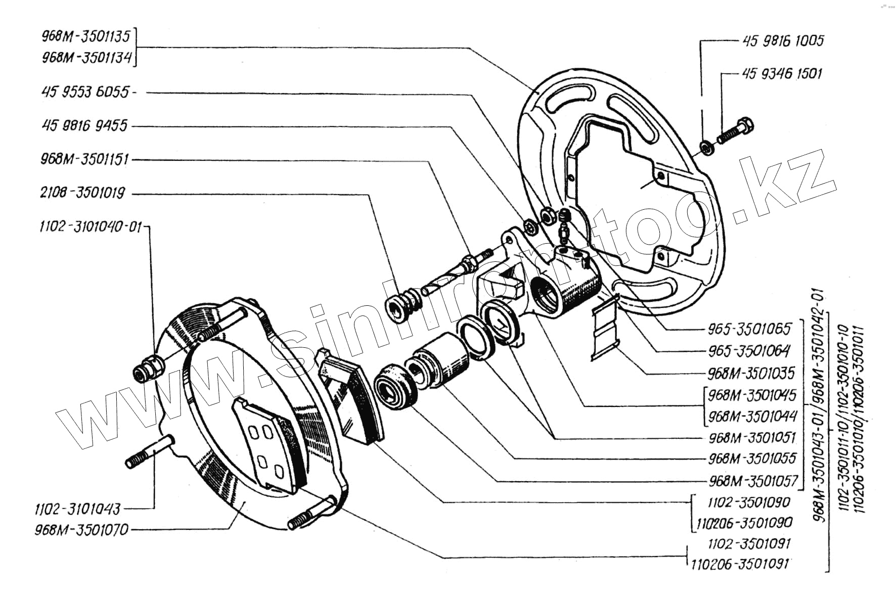 Каталог запасных частей к технике: ЗАЗ 1102 (Таврия). Тормоза передние