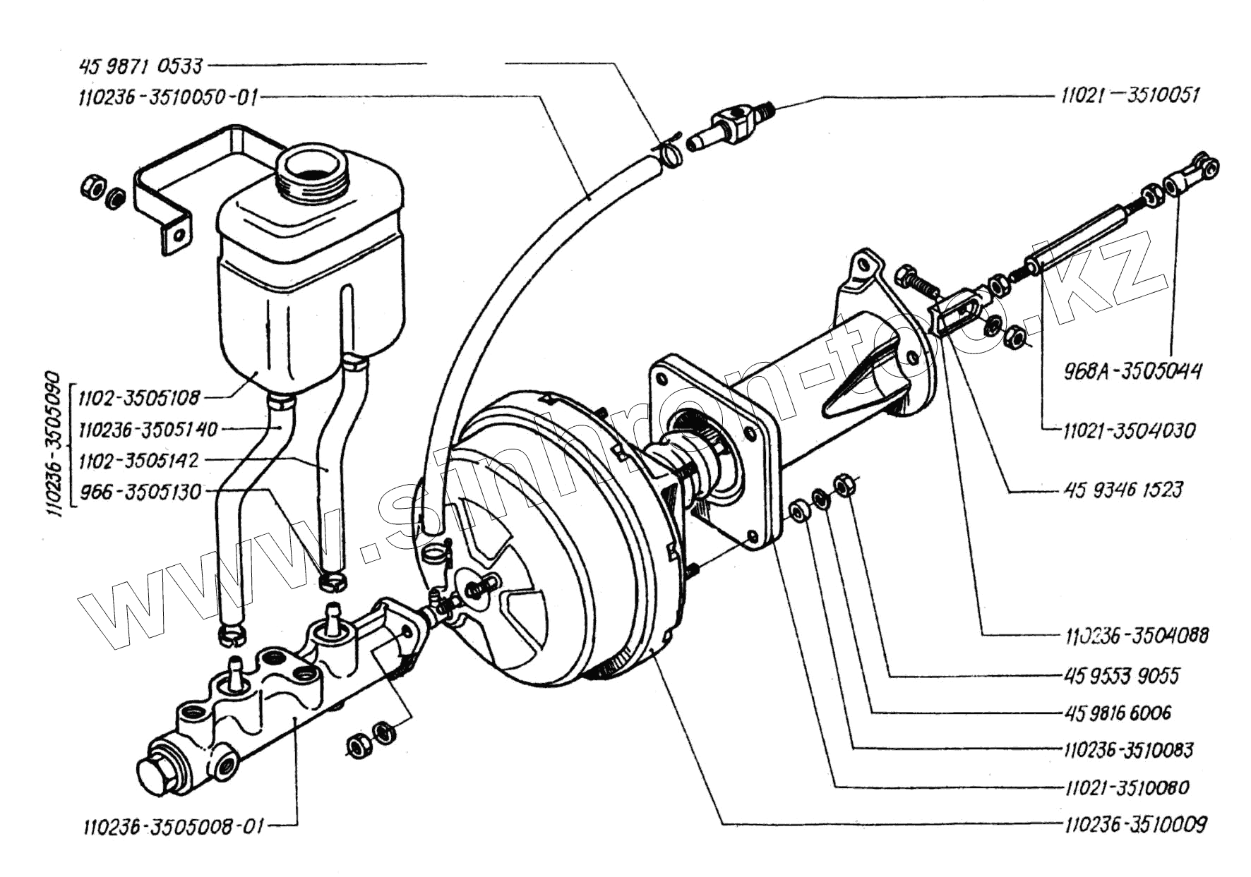 Каталог запасных частей к технике: ЗАЗ 1102 (Таврия). Усилитель вакуумный привода тормозов