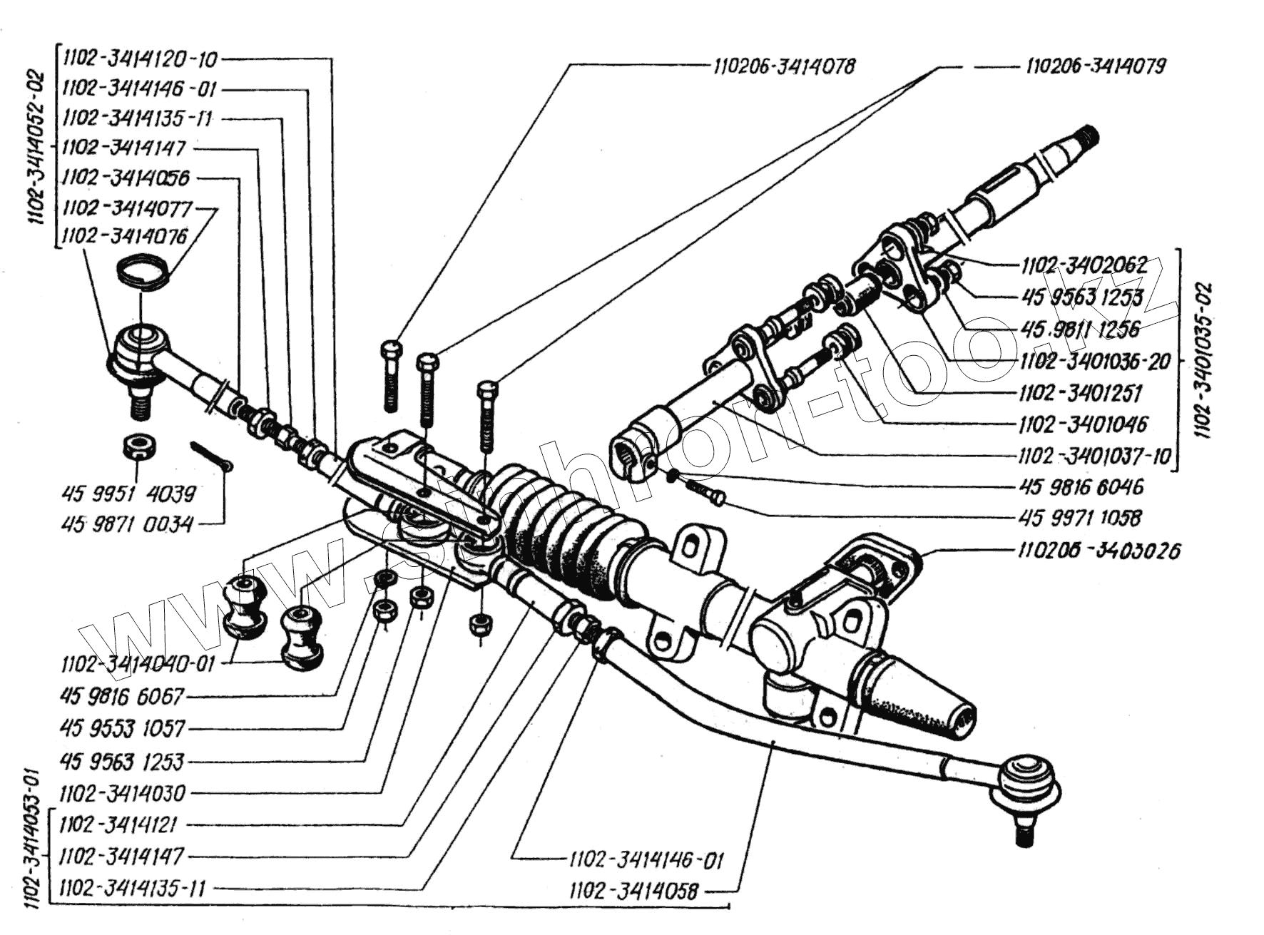 Каталог запасных частей к технике: ЗАЗ 1102 (Таврия). Вал и тяги рулевого управления