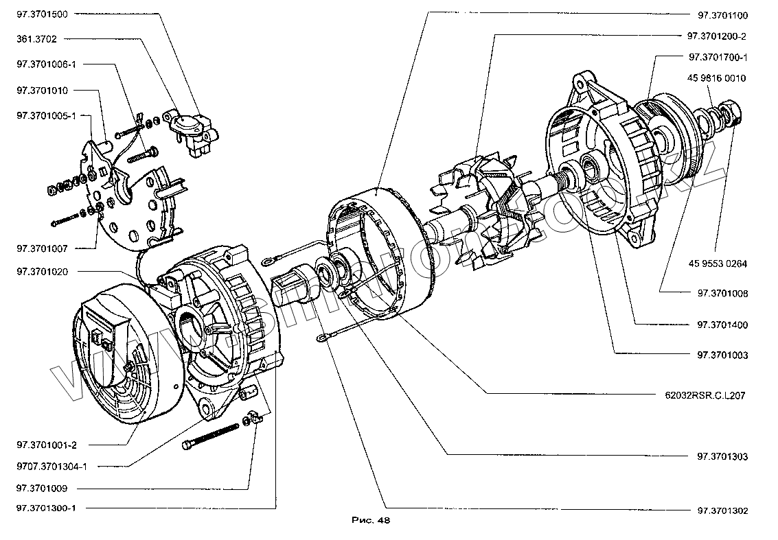 Каталог запасных частей к технике: ЗАЗ-1102 (Таврия Нова). Детали генератора