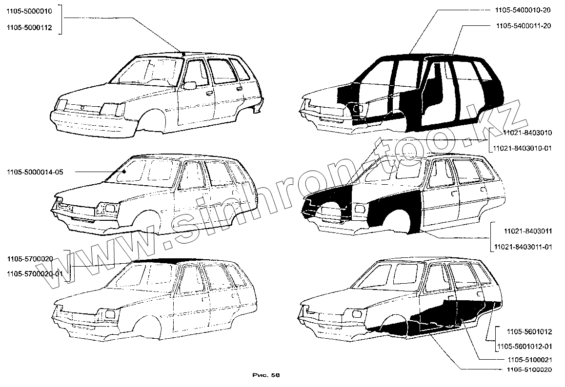 Каталог запасных частей к технике: ЗАЗ-1102 (Таврия Нова). Детали кузова (ЗАЗ-1105)