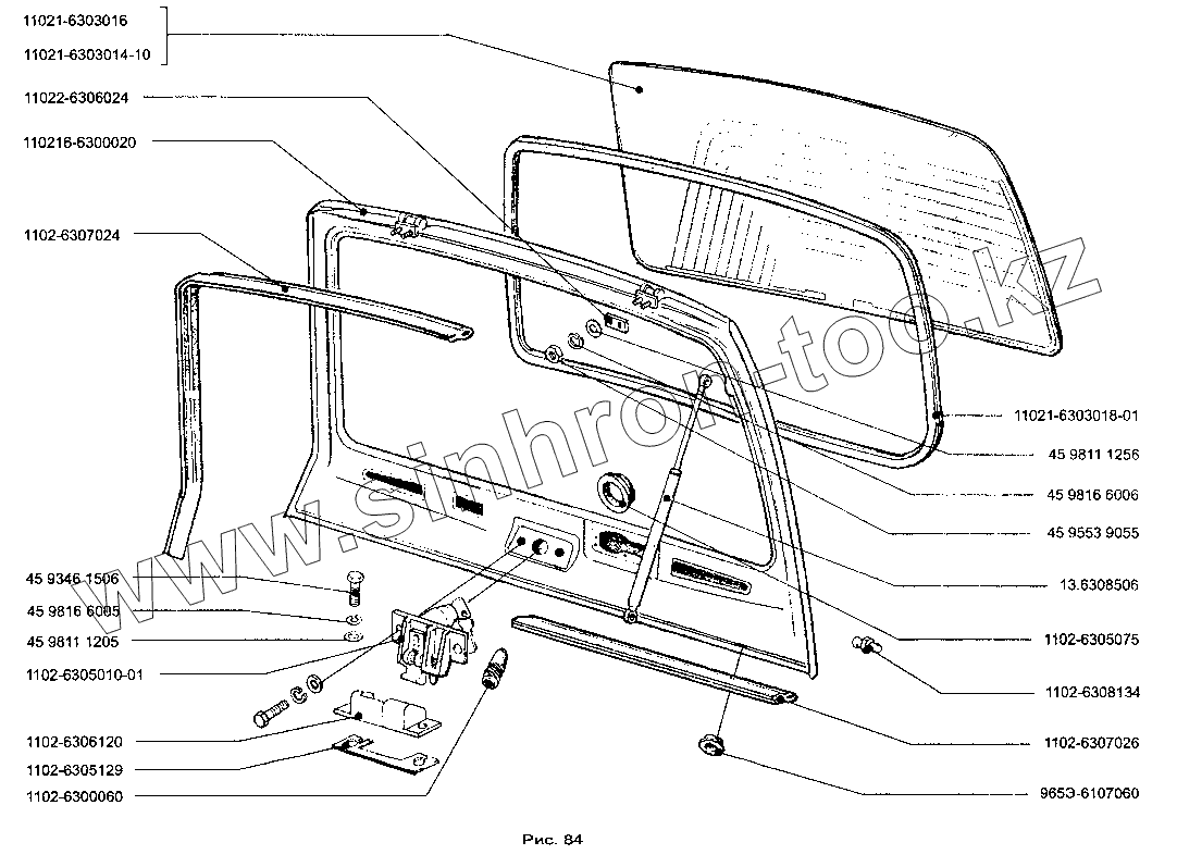 Каталог запасных частей к технике: ЗАЗ-1102 (Таврия Нова). Дверь задка, стекло, уплотнитель, замок