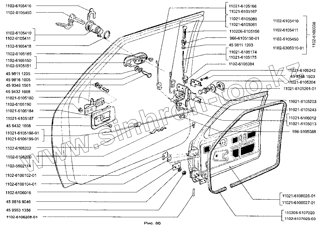 Каталог запасных частей к технике: ЗАЗ-1102 (Таврия Нова). Двери, замки, ручки дверей, уплотнитель