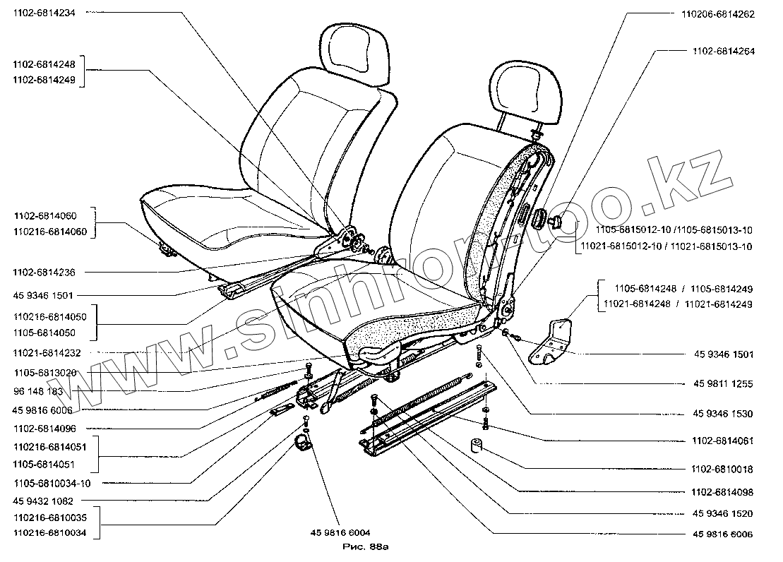 Каталог запасных частей к технике: ЗАЗ-1102 (Таврия Нова). Механизм регулирования положения передних сидений
