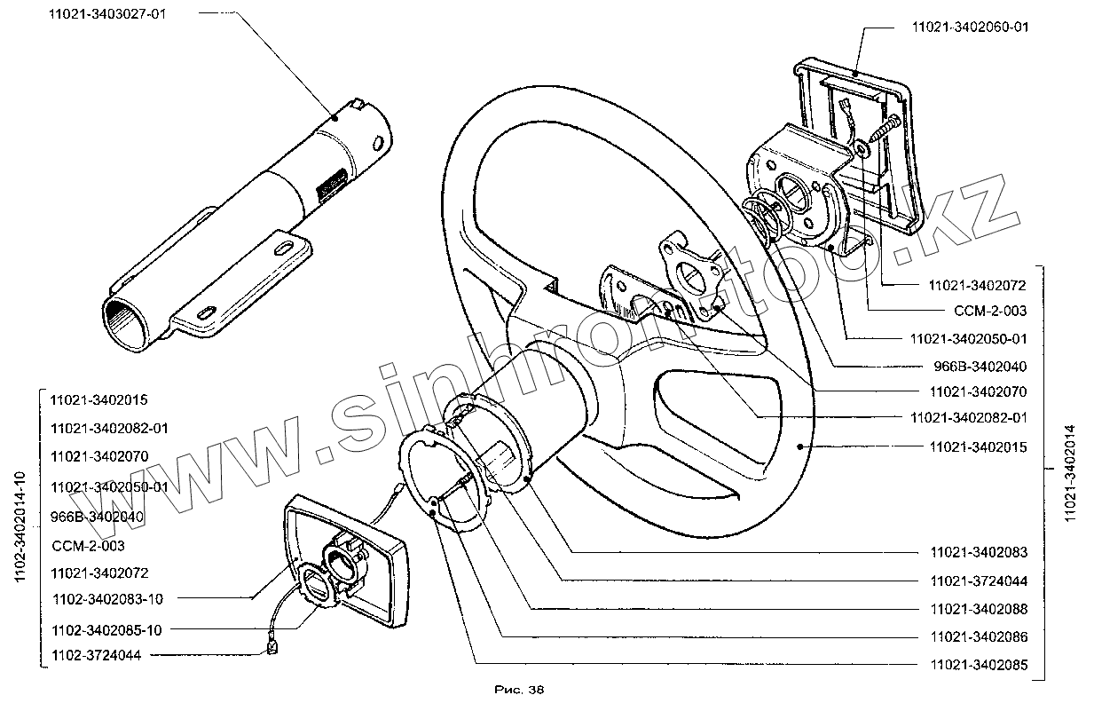 Каталог запасных частей к технике: ЗАЗ-1102 (Таврия Нова). Рулевое колесо, опора вала