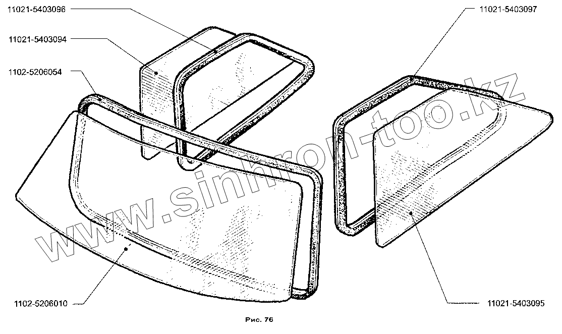 Каталог запасных частей к технике: ЗАЗ-1102 (Таврия Нова). Стекла ветрового окна и боковин