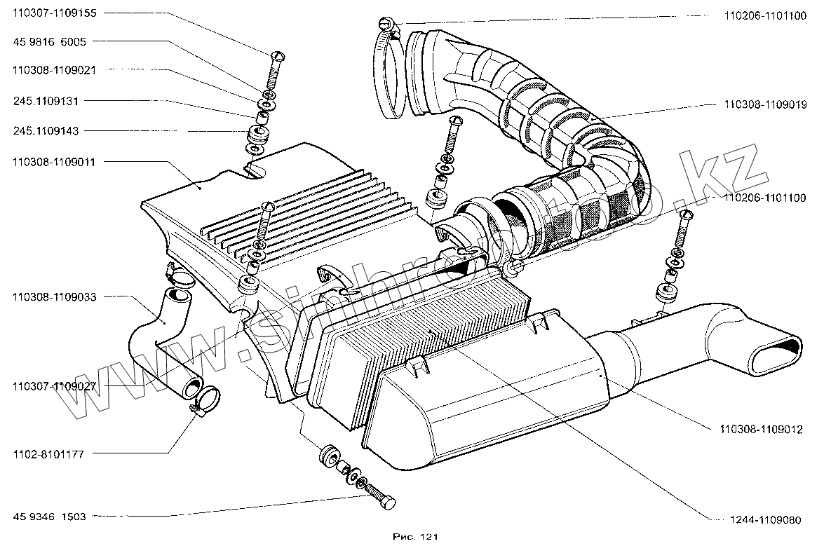 Каталог запасных частей к технике: ЗАЗ-1102 (Таврия Нова). Воздушный фильтр (МеМЗ-З3071)