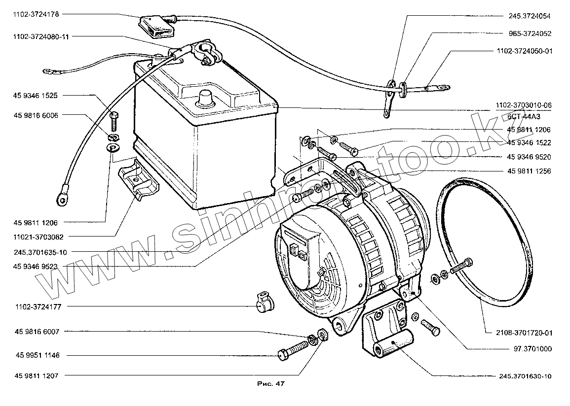 Каталог запасных частей к технике: ЗАЗ-1103 (Славута). Аккумуляторная батарея и генератор
