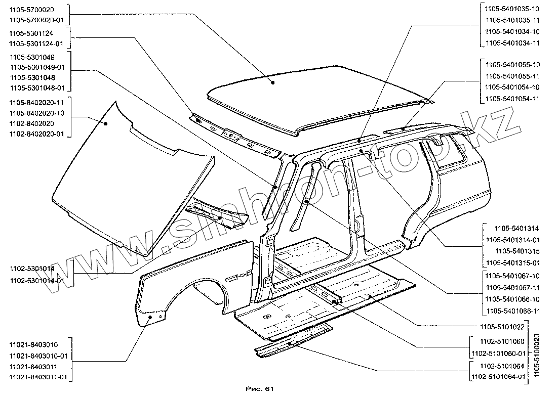 | 1105-5700020 | 1105-5700020 | Крыша в сборе | |