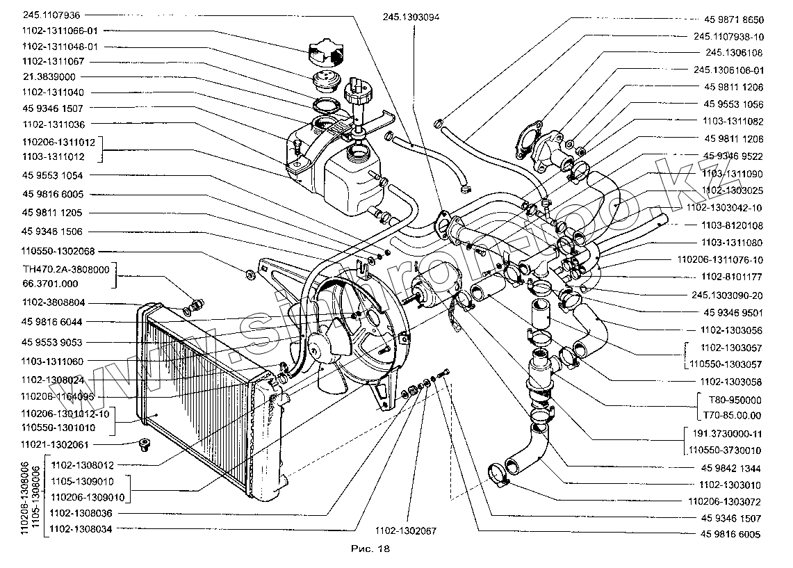 Каталог запасных частей к технике: ЗАЗ-1103 (Славута). Детали системы охлаждения