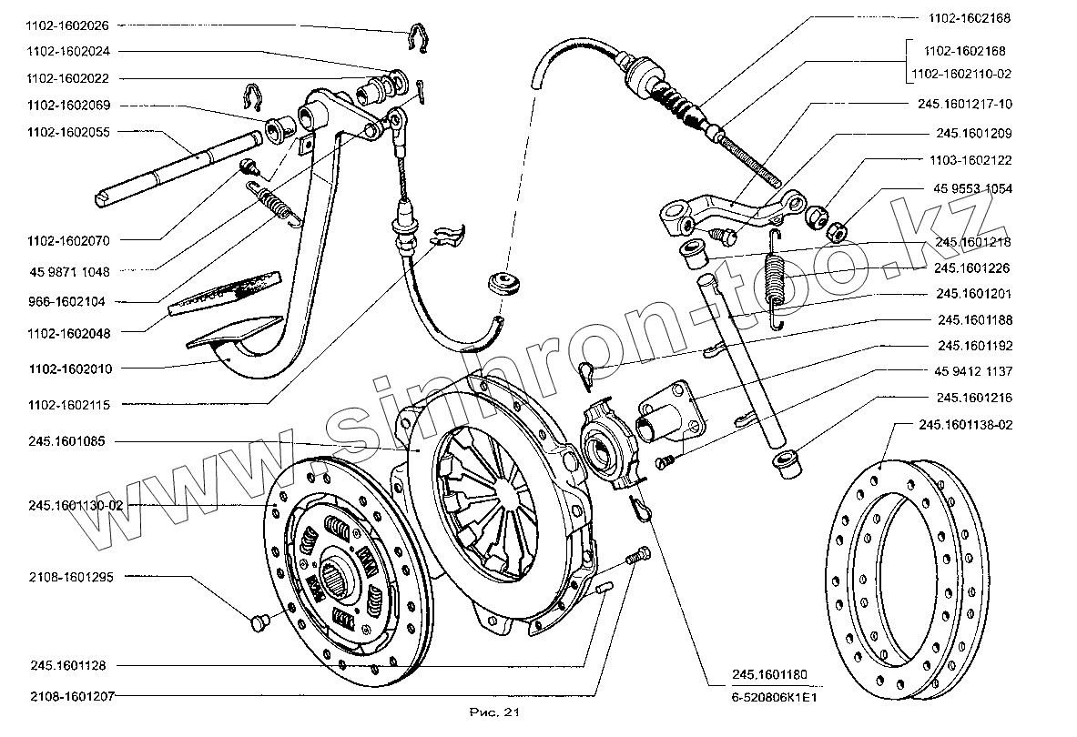 Каталог запасных частей к технике: ЗАЗ-1103 (Славута). Механизм и привод управления сцеплением
