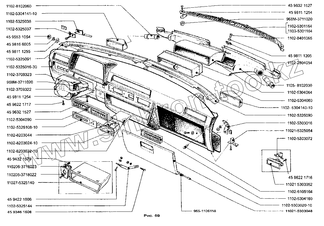 Каталог запасных частей к технике: ЗАЗ-1103 (Славута). Панель приборов 1102-5325016-30