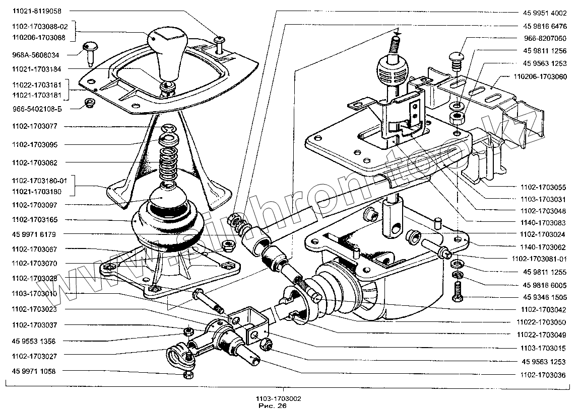 Каталог запасных частей к технике: ЗАЗ-1103 (Славута). Привод управления механизмом переключения передач