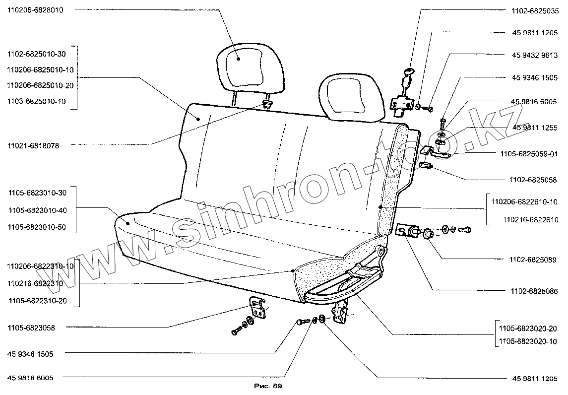 Каталог запасных частей к технике: ЗАЗ-1103 (Славута). Сиденье заднее