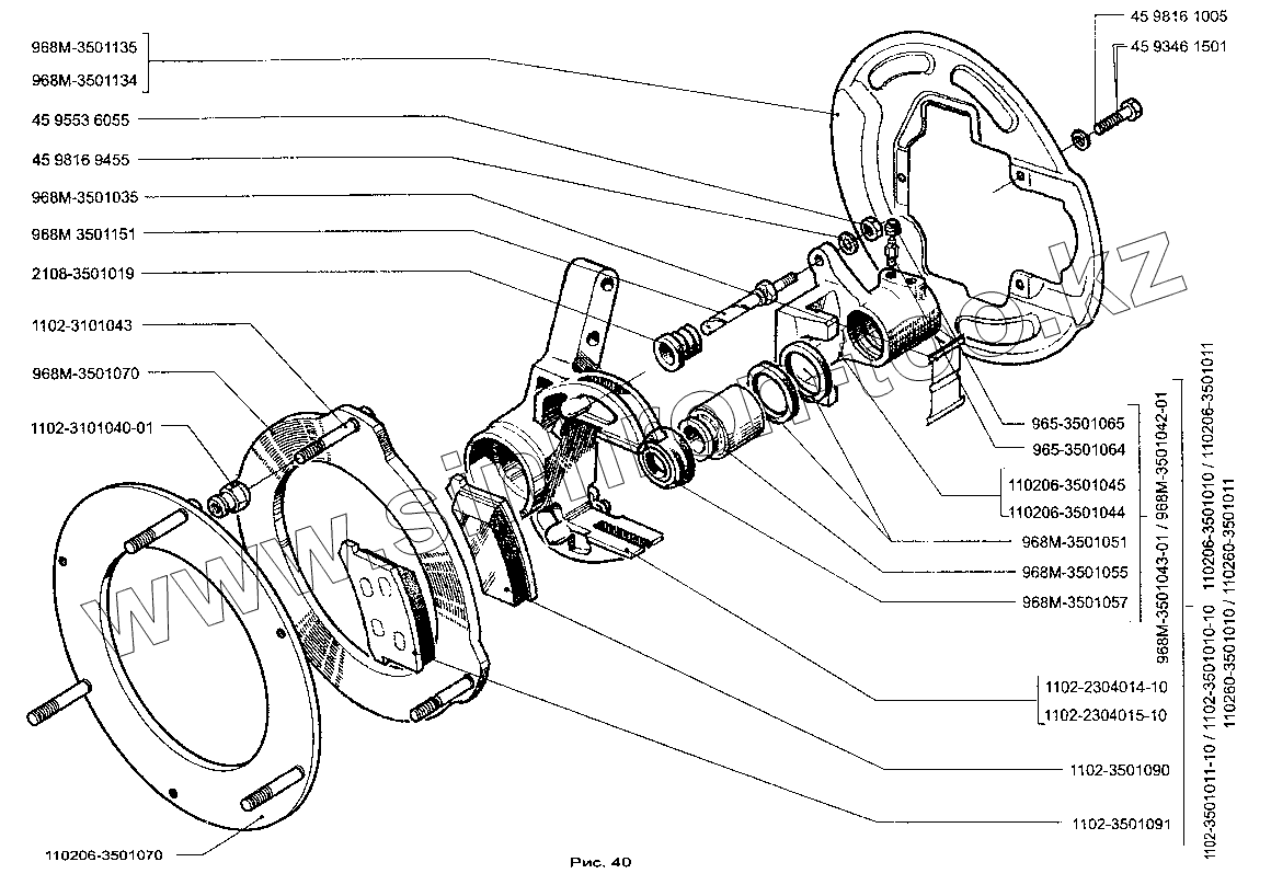 Каталог запасных частей к технике: ЗАЗ-1103 (Славута). Тормоза передние