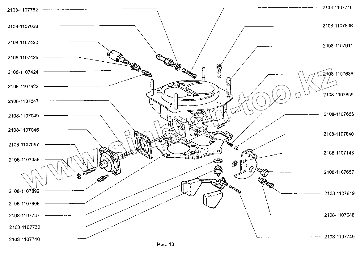 Каталог запасных частей к технике: ЗАЗ-1105 (Дана). Детали крышки карбюратора