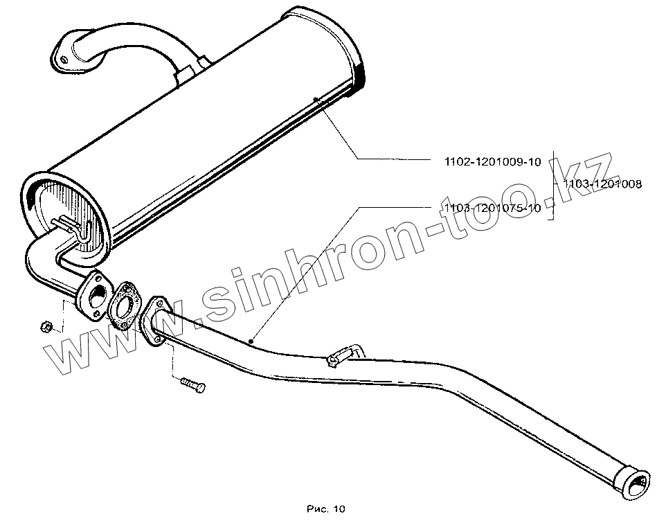 Каталог запасных частей к технике: ЗАЗ-1105 (Дана). Глушитель выхлопа (ЗАЗ-1103)