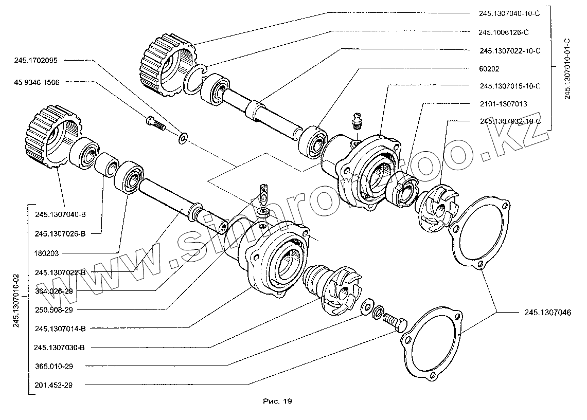 Каталог запасных частей к технике: ЗАЗ-1105 (Дана). Насос водяной 245.1307010-01-С
