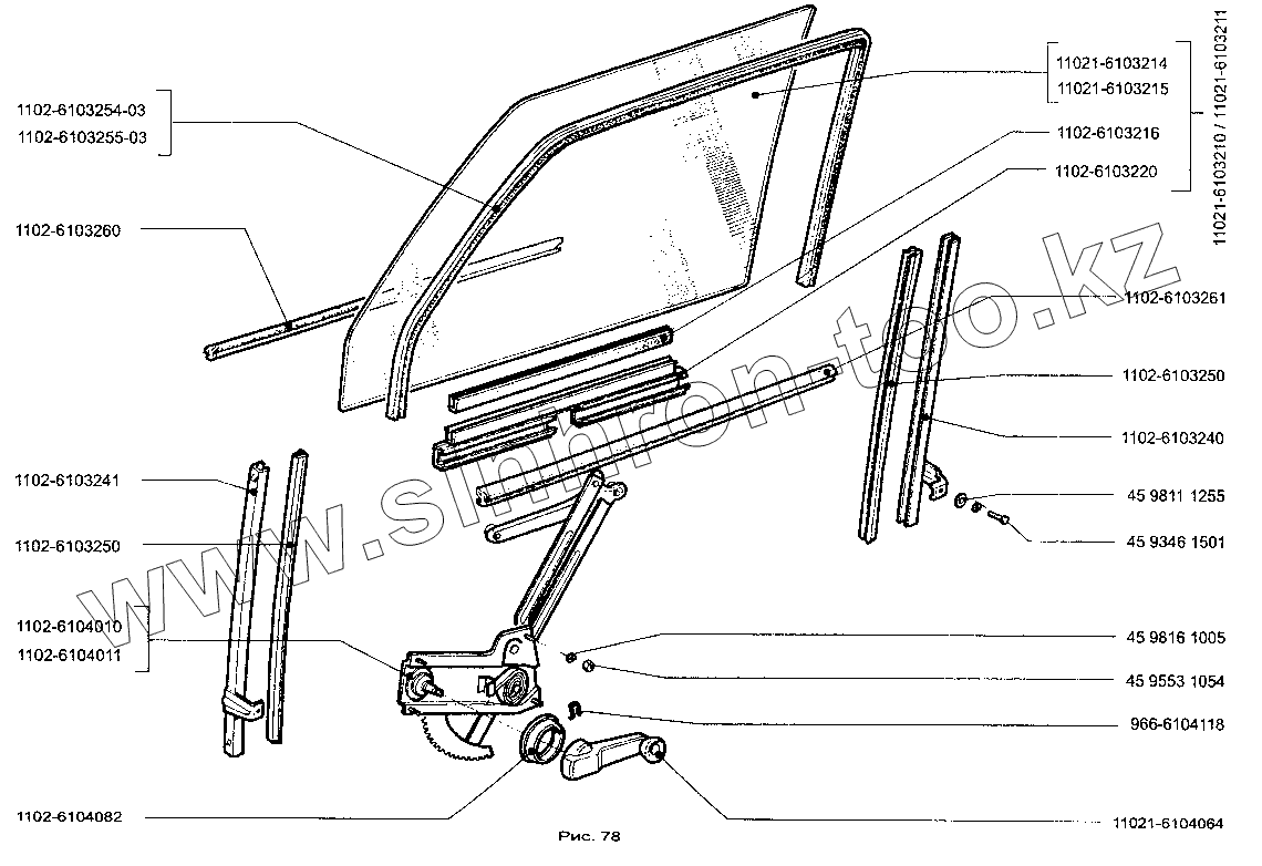 | 11021-6103210 | 11021-6103210 | Стекло опускное двери правое в сборе | |