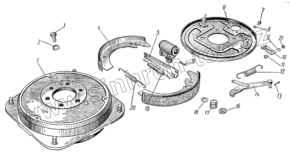 Каталог запасных частей к технике: ЗАЗ 965. Детали заднего тормоза