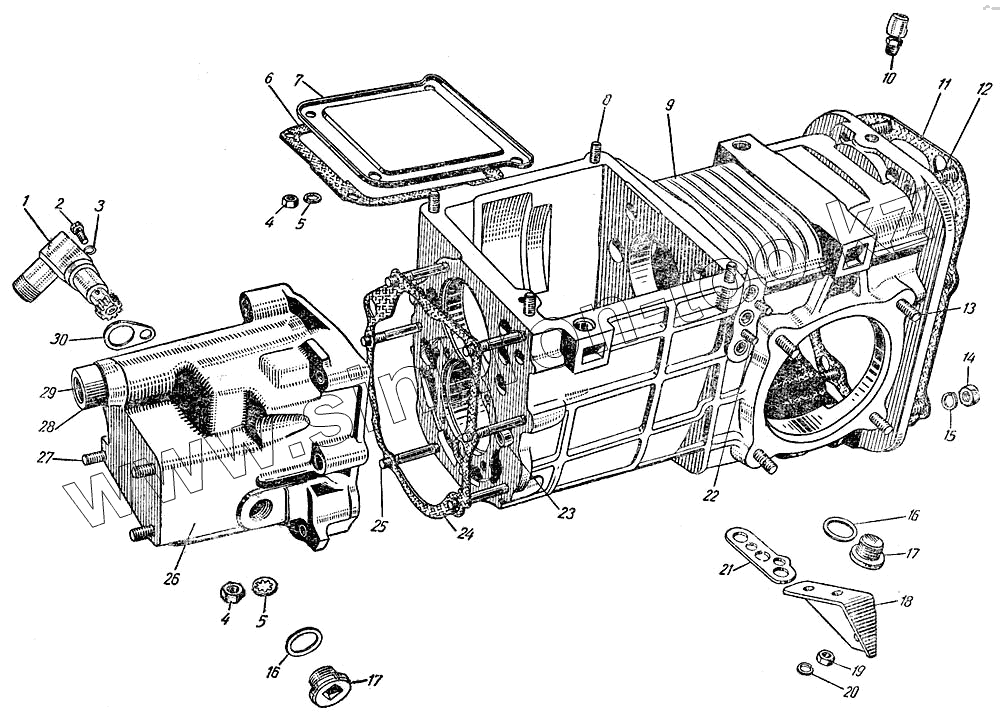 Каталог запасных частей к технике: ЗАЗ 965. Картер коробки передач
