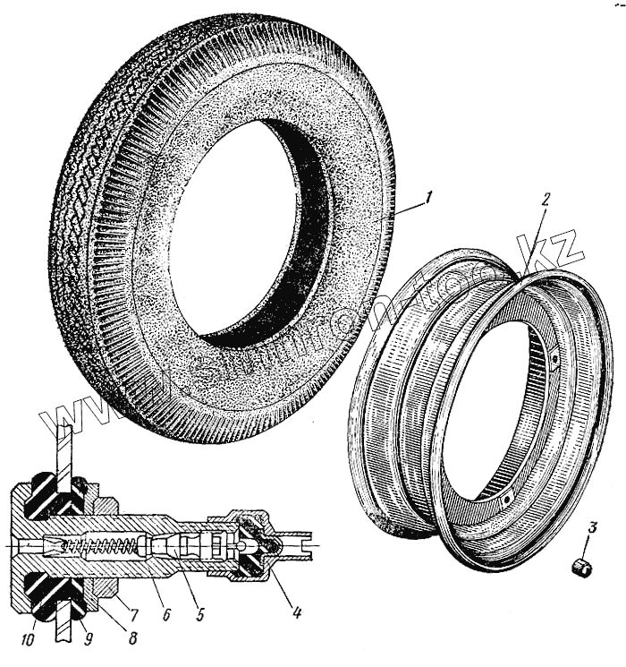 Каталог запасных частей к технике: ЗАЗ 965. Колесо и шина
