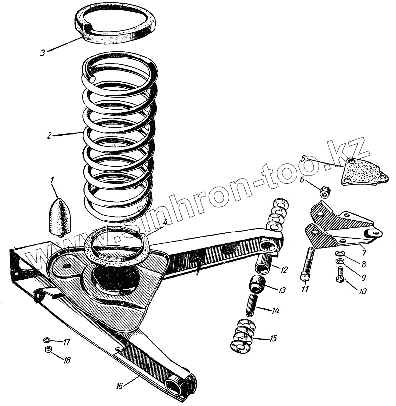 Каталог запасных частей к технике: ЗАЗ 965. Пружины и рычаги задней подвески
