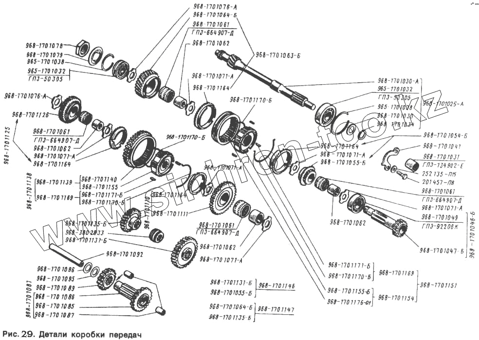 Каталог запасных частей к технике: ЗАЗ 968. Детали коробки передач