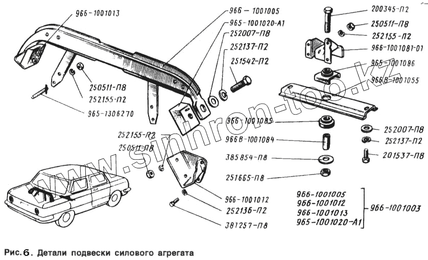 Каталог запасных частей к технике: ЗАЗ 968. Детали подвески силового агрегата