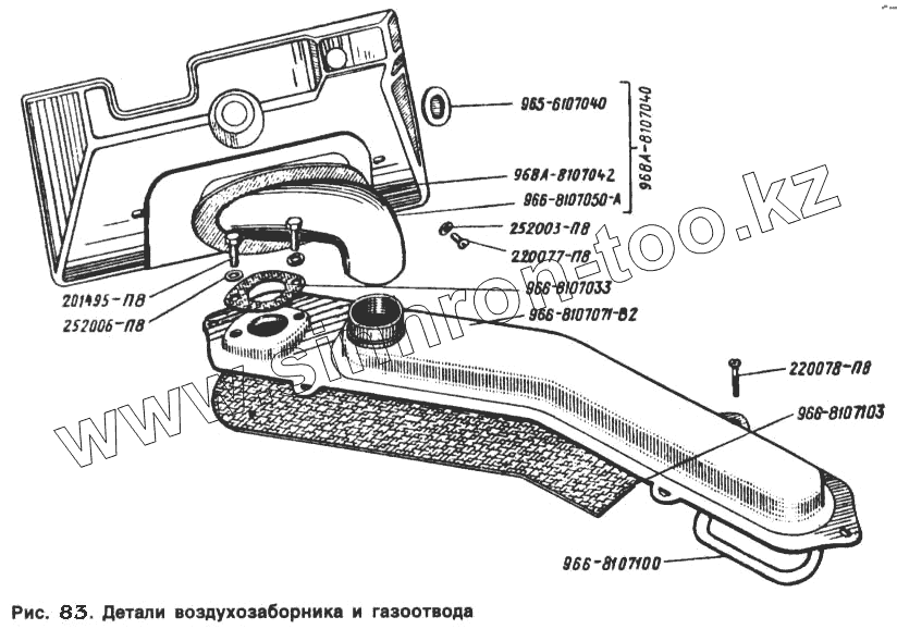Каталог запасных частей к технике: ЗАЗ 968. Детали воздухозаборника и газоотвода