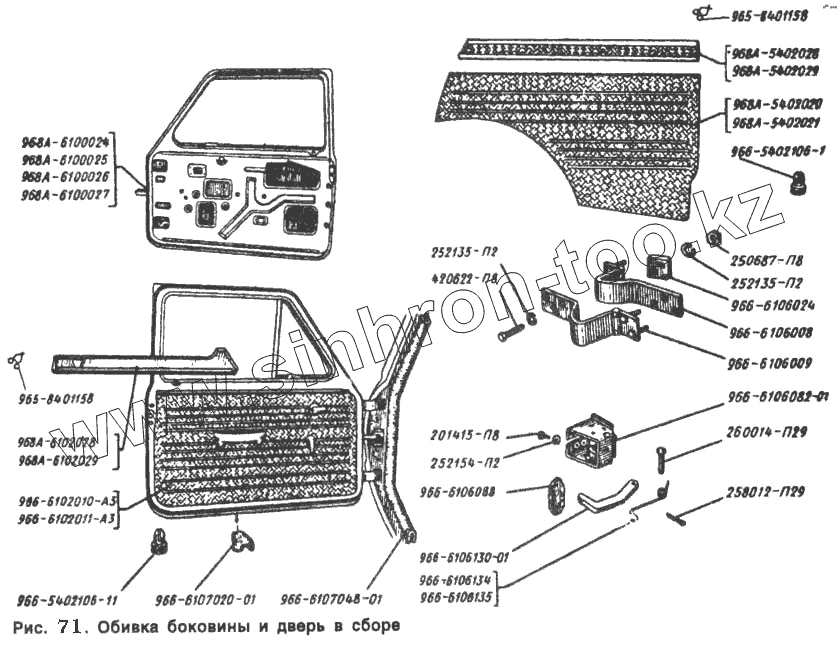Каталог запасных частей к технике: ЗАЗ 968. Дверь в сборе, обивка боковины