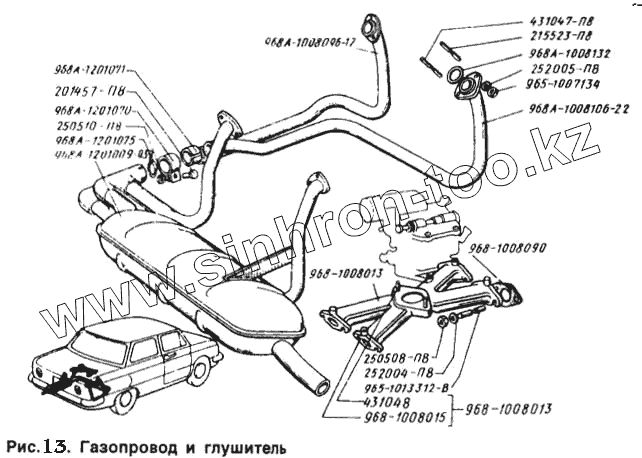 Каталог запасных частей к технике: ЗАЗ 968. Газопровод и глушитель
