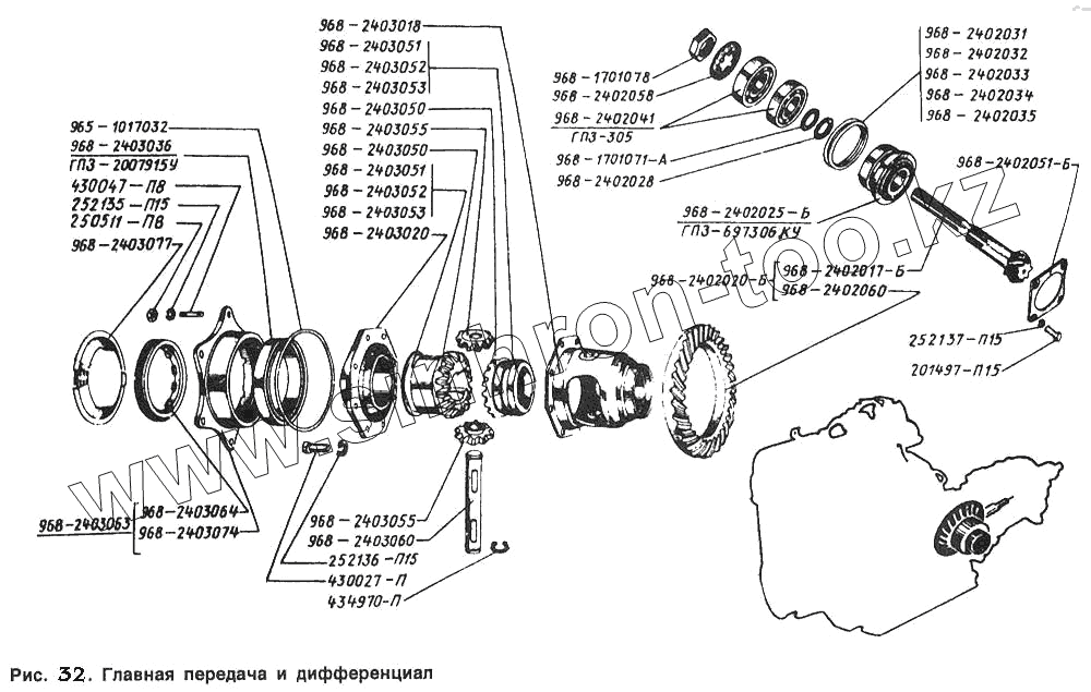 Каталог запасных частей к технике: ЗАЗ 968. Главная передача и дифференциал