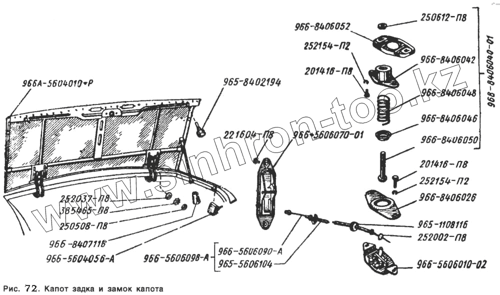Каталог запасных частей к технике: ЗАЗ 968. Капот задка и замок задка
