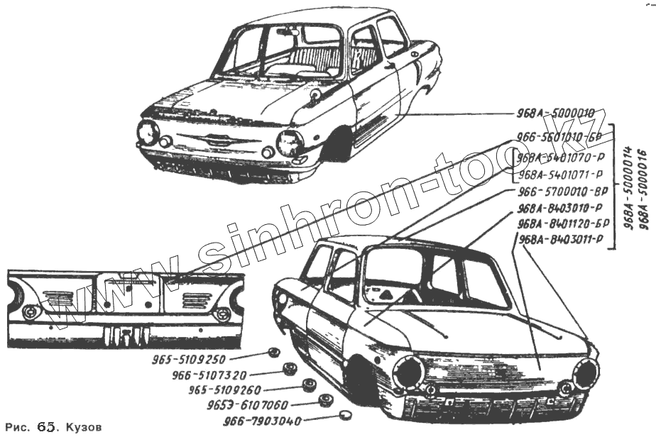 Каталог запасных частей к технике: ЗАЗ 968. Кузов