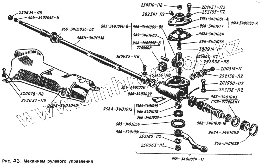 Каталог запасных частей к технике: ЗАЗ 968. Механизм рулевого управления
