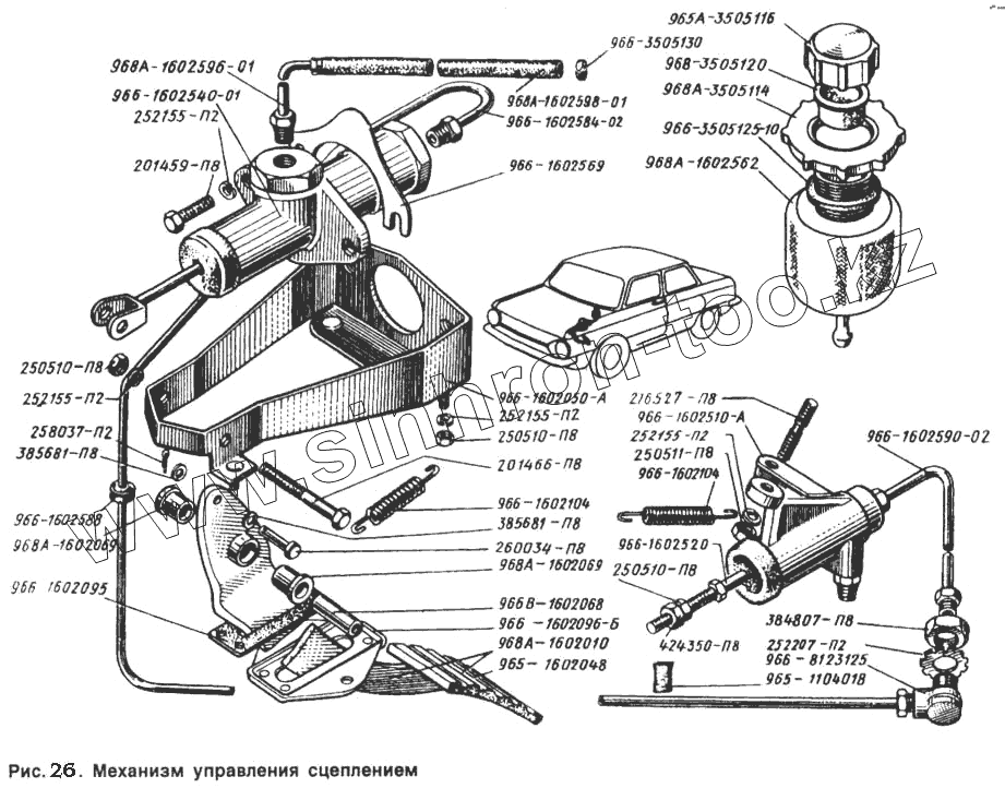 Каталог запасных частей к технике: ЗАЗ 968. Механизм управления сцеплением